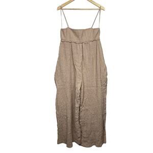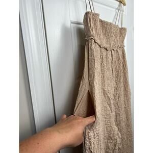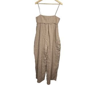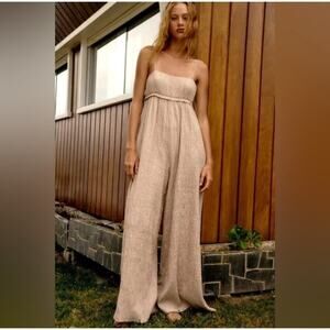 ZARA Beige Textured Ruffle Wide Leg Boho STRUCTURED LONG JUMPSUIT Medium