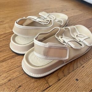 Stylish beige wedge sandals from Zara. Perfect for casual outings. Worn 4x in good condition just need cleaning in the mesh part, as seen on image. True to size and fit very comfortable. Velcro strap closure.