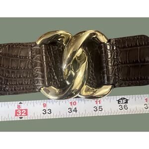 ZARA Belt, Dark Brown, Gator Textured, Gold Buckle| 36”