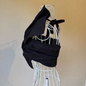 Absolutely stunning ZARA black asymmetrical crop top featuring a dramatic oversized bow detail and ruched fabric. This chic statement piece is perfect for parties, date nights, and special occasions. A true standout top that elevates any look — pair with high-waisted trousers or a sleek skirt.