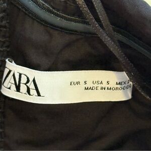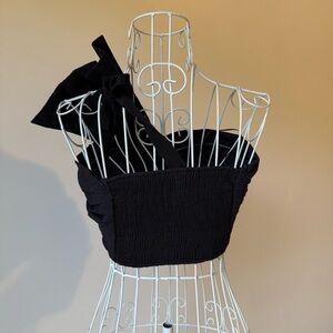 ZARA Black Asymmetrical Bow Crop Top One Shoulder Party Blouse SZ S cotton