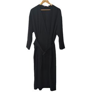 ZARA Black Belted Double Breasted Wrap Midi Dress Long Sleeve XL