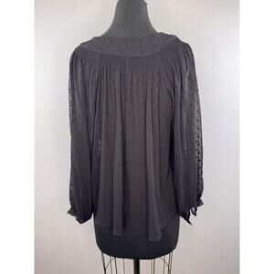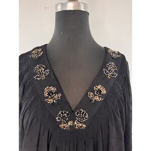 Zara Black Blouse Floral Sheer Polka Dot Beaded Embroidered V-Neck Size Medium M