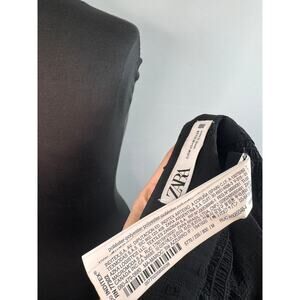 ZARA Black Blouse Floral Sheer Polka Dot Beaded Embroidered V-Neck Size Medium M