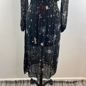 Zara Black Celestial Dress Galaxy Back Button Waist Smocked Jewel Neck Size XS