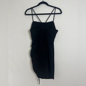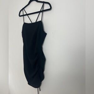 ZARA Black Classic Ruched Square Neck Strappy Back Bodycon Mini Dress Size Small