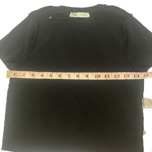 ZARA Black Crew Neck Viscose Blend Cropped Short Sleeve Top Size L
