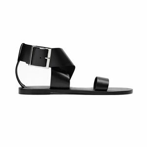 Step out in effortless style with these chic Zara black flat sandals, designed with a modern criss-cross gladiator silhouette and a bold maxi buckle ankle strap. Sleek and versatile, they add just the right amount of edge to any outfit—from casual daytime looks to elevated evening wear.