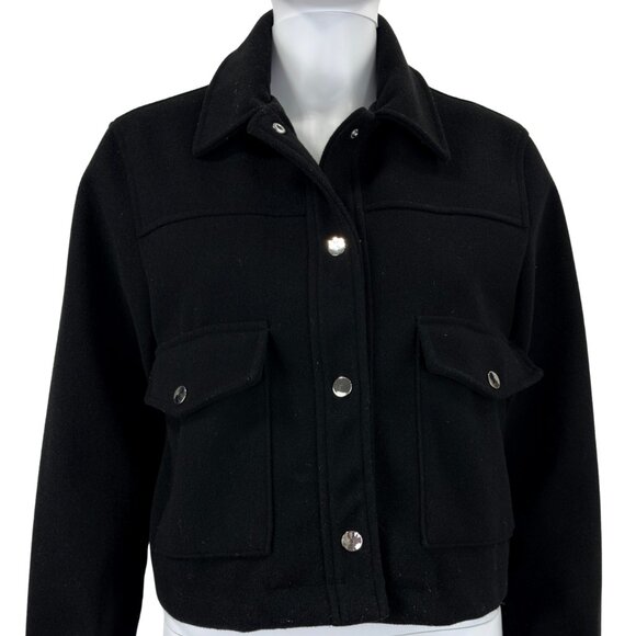 ZARA | Black Cropped Wool-Blend Utility Jacket | Silver Hardware | Size S