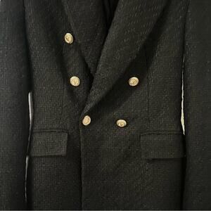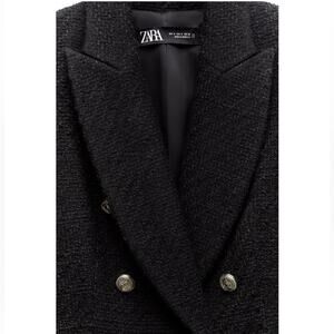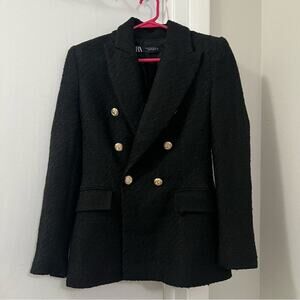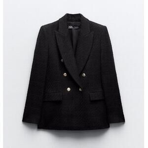 ZARA Black DOUBLE BREASTED TEXTURED WEAVE JACKET XS