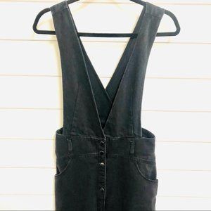 ZARA Black Denim Midi Pinafore Overall Button Down Dress Size XS NWT
