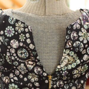 Very neat printed diamonds and multi-colored jewels pattern on this black dress!