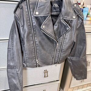 Edgy and chic ZARA faux leather biker jacket in classic black.