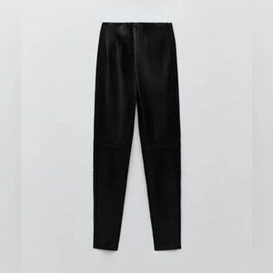 ZARA Black Faux Leather Midrise Ankle Cropped Straight Pants Size MEDIUM Moto
