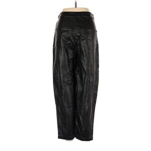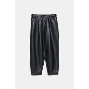 ZARA Black Faux Leather Slouchy Pants With Waist Buckles - US 4