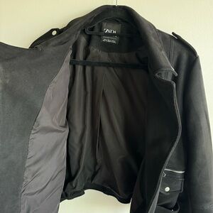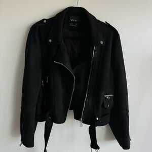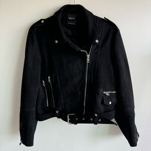 ZARA Black Faux Suede Leather Biker Moto Zip Up Jacket XL
