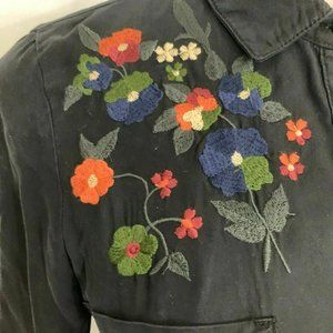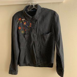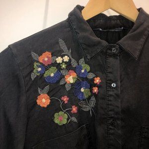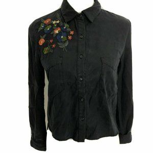 ZARA Black Floral Embroidered l.sleeve shirt sz Small