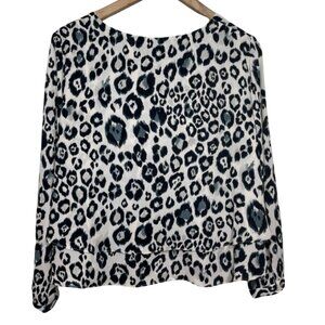 ZARA | Black & Gray Leopard Print Long Sleeve Layered Blouse | Size M