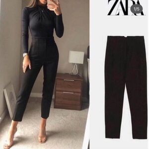 ZARA Black High Waist Pleated Pant Trousers with Darts