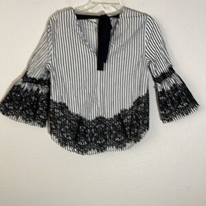 Zara Lace Stripped Bell Sleeve Blouse