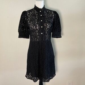 ZARA Black Lace Dress With Jewel Buttons Size Medium