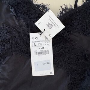 ZARA Black Lace Trim Bodysuit – Size L (NWT)