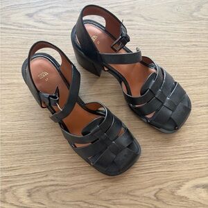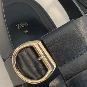 ZARA Black Leather Fisherman Sandal EU 39 Size 8