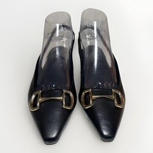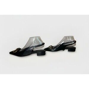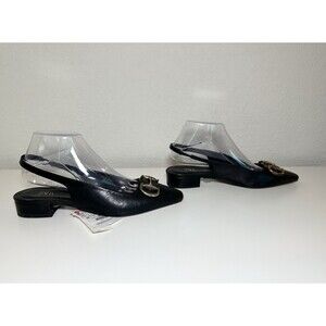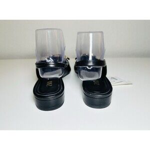 ZARA Black Leather Slingback Pointed Toe Mules Buckle Women Heels US 8 EU 39 NEW