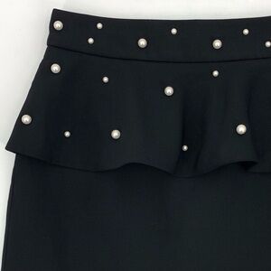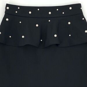 ZARA Black Peplum Faux Pearls Mini Skirt, Women’s Size Small.