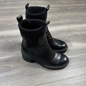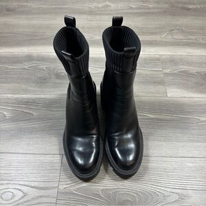 ZARA Black Platform Lug Sole Boots Chunky Pull-On Ankle Booties Size 8