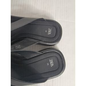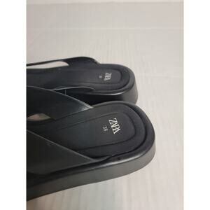 ZARA Black Platform Thong Sandal Leather Square Toe Padded EU 39 / US 8.5 - 9