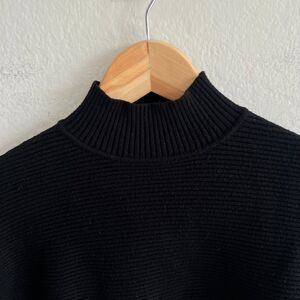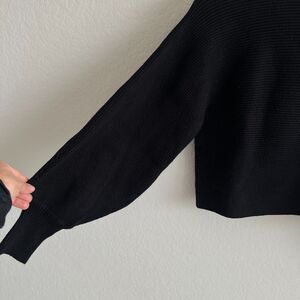 ZARA Black Ribbed Crop Turtleneck Bishop Long Sleeve Sweater Womens Small