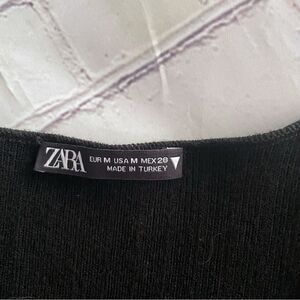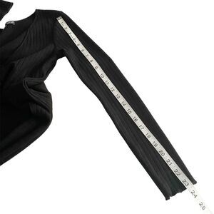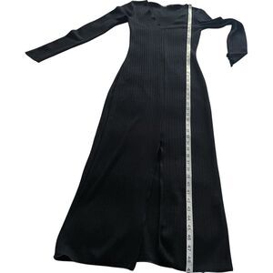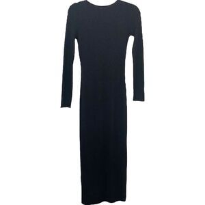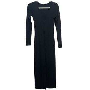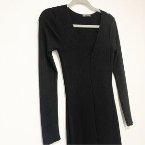 ZARA Black Ribbed Knit Sweater Midi Dress – Long Sleeve V-Neck with Front Slit M