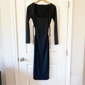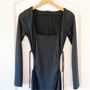 ZARA Black Ruched Side Cutout Long Sleeve Dress Cocktail Holiday