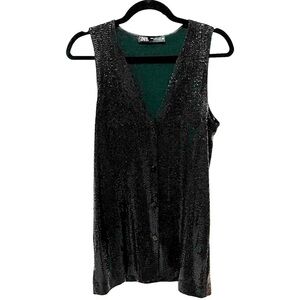 ZARA Black Sequin Sleeveless Vest V Neck Button Down Dress Sz XS