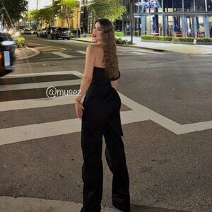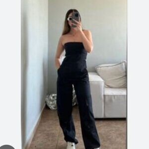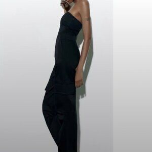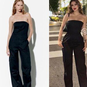 ZARA Black Strapless Cargo Pant Jumpsuit 100% Cotton Size S