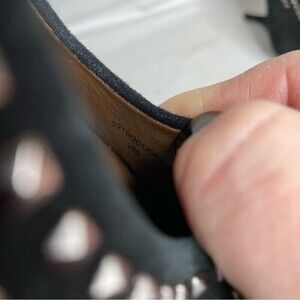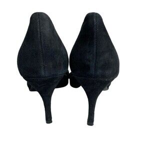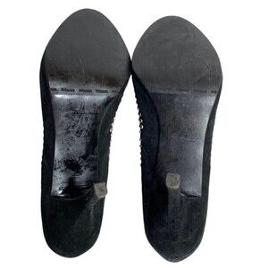 Chic and edgy, these Zara black suede peep-toe heels feature silver pyramid stud detailing along the sides and toe, adding a touch of glam. The sleek design includes a soft faux suede upper, a modest platform, and a stiletto heel perfect for night outs or dressy events. Comfortable leather-like lining. Size 41 (approx US 10.5).
