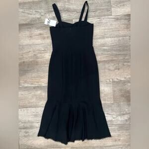 Elegant ZARA black midi dress featuring a sweetheart neckline, wide straps, fitted bodice, and an asymmetric hem with frayed trim for a modern, elevated look. This piece is sleek, sculpting, and perfect for date nights, special events, vacations, and evening outfits. Made in Morocco and new with tags in size M. Sold out in stores and a high-demand style.