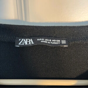 ZARA Black Top With Sheer Puff Sleeves Size S Peter Pan Boho Classic