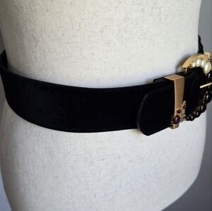 ZARA, Black Velvet Bejewelled Buckle Wide Statement Belt, Size 31 Waist