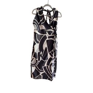 ZARA Black White Abstract Wrap Dress Size L Sleeveless Midi V-Neck