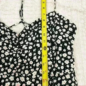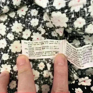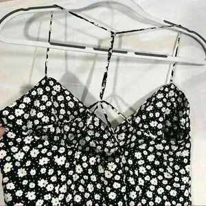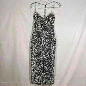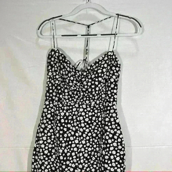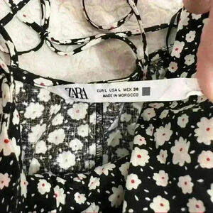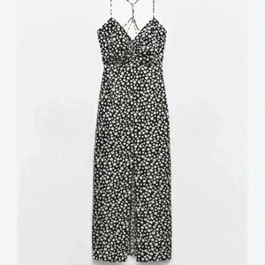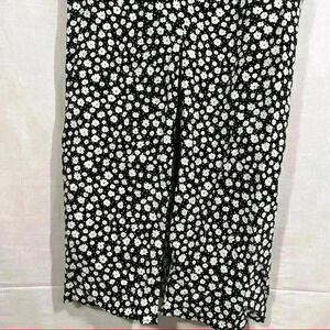 ZARA Black White Daisy Micro Floral Flower Print Linen Blend Midi Dress Sz L