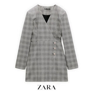 Chic and versatile plaid blazer dress from Zara. Featuring a structured silhouette with long sleeves, a deep V-neckline, and button detailing, this dress combines elegance with a modern edge. Perfect for work, dinner dates, or nights out.