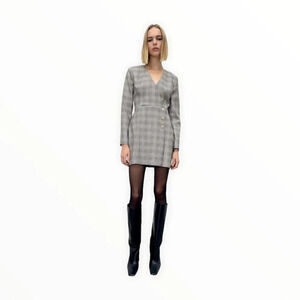 Chic and versatile plaid blazer dress from Zara. Featuring a structured silhouette with long sleeves, a deep V-neckline, and button detailing, this dress combines elegance with a modern edge. Perfect for work, dinner dates, or nights out.
