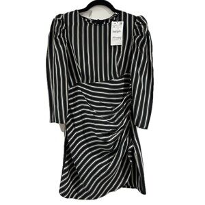 👗▫️ ZARA Black White Striped Draped Mini Dress | Cupro Silk Ruched Sz M (S/XS)