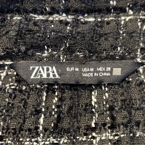 ZARA Black White Tweed Blazer Woman’s Top V-Neck Collared Button Sz Medium