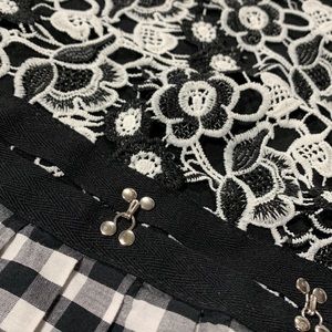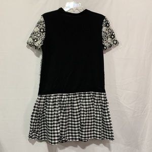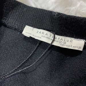 Size small This elegant A-line dress from Zara features a mix media of classic black and white color scheme, lace and knit perfect for casual or work occasions. The dress boasts a crew neck and short sleeves, adding a touch of sophistication to its design. Its drop waist and flared skirt create a flattering silhouette, making it a versatile addition to any occasion. Pull over dress.