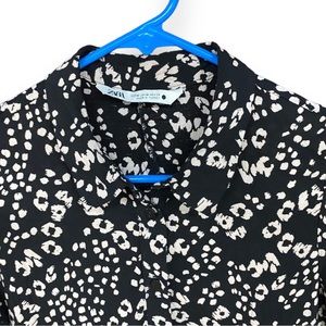 ZARA Black and White Floral Marilyn Belted Shirt Dress Medium