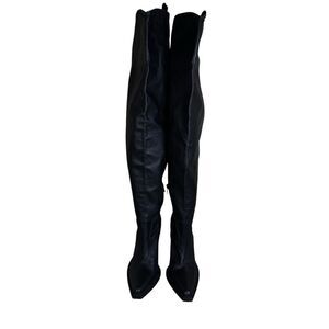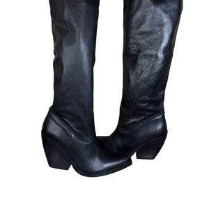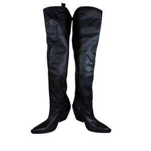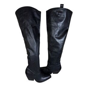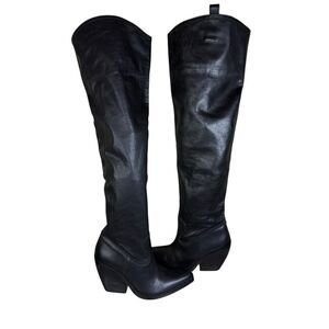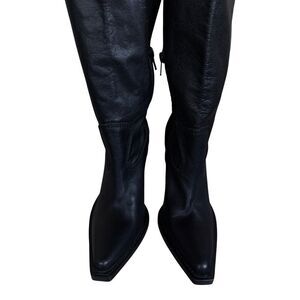 ZARA Black Leather Over-the-Knee Cowboy Boots 8.5 US / 39 EU Western Chic