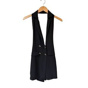 ZARA Black Sleeveless Double-Breasted Playsuit Romper Size XS
